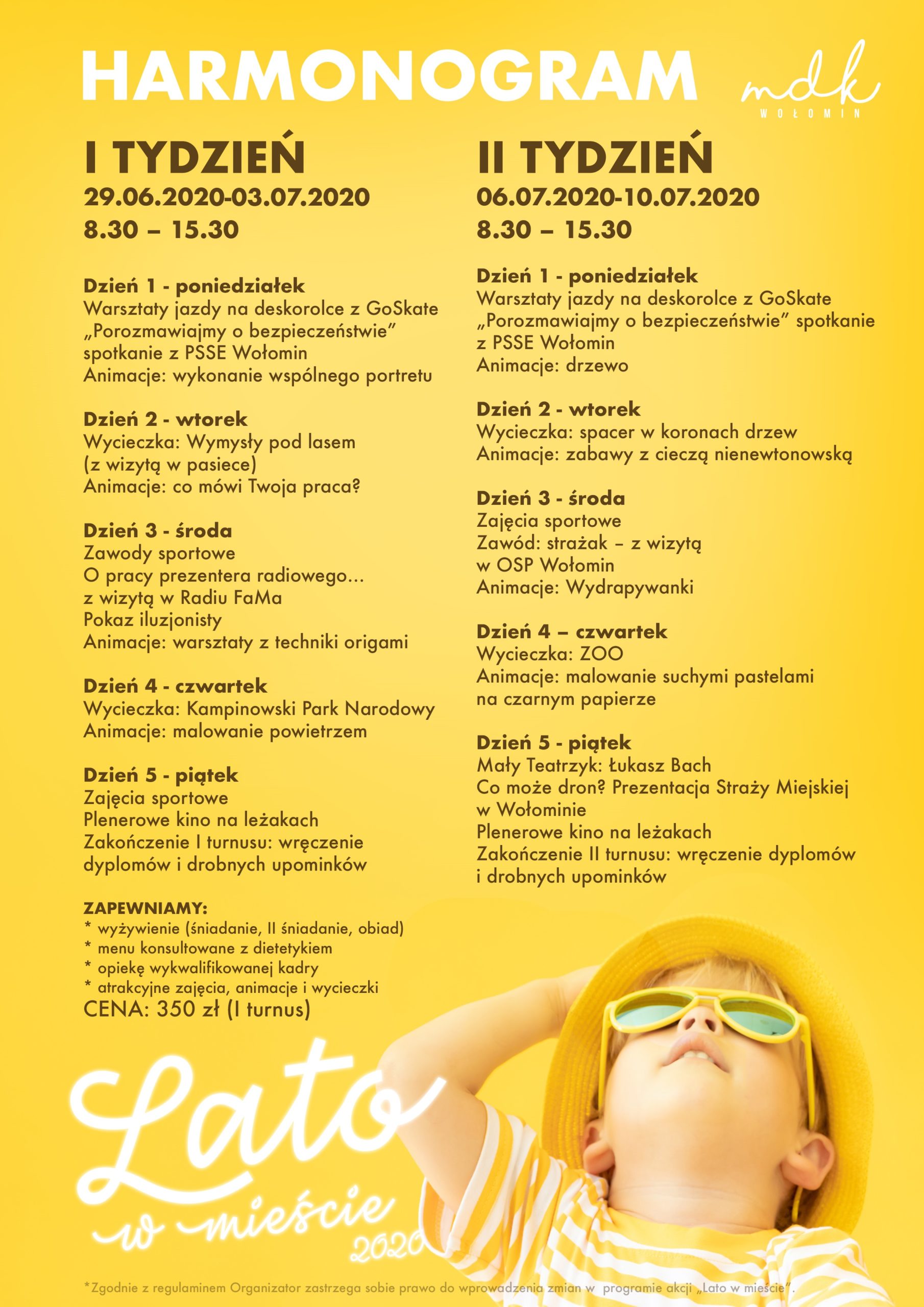 Zapraszamy dzieci w wieku 7-11 lat do wzięcia udziału w półkoloniach „lato w mieście” organizowanych w MDK. Program i zasady są dostosowane do obecnej sytuacji.