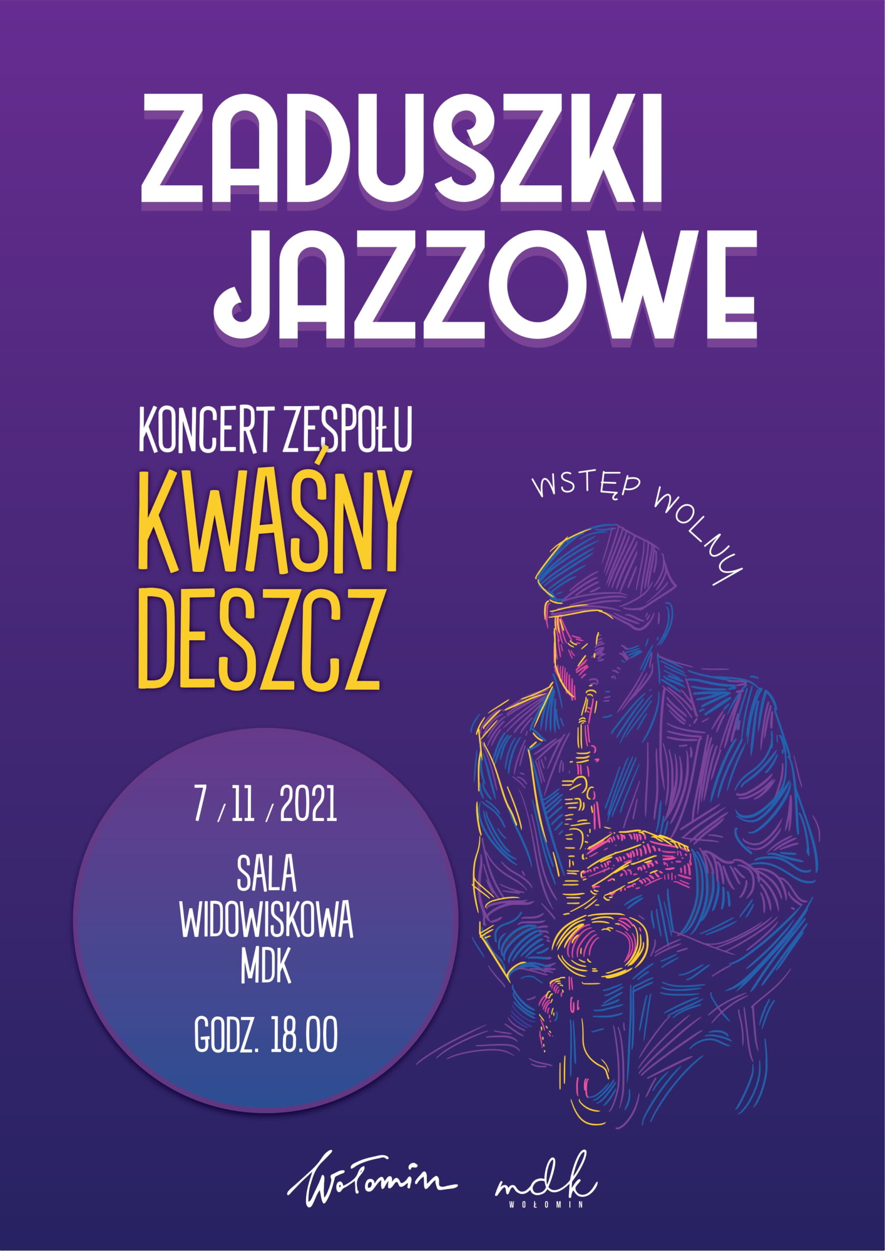 7 listopada 2021 roku o godzinie 18.00 sala widowiskowa Miejskiego Domu Kultury zamieni się w klub jazzowy za sprawą koncertu zespołu Kwaśny Deszcz.