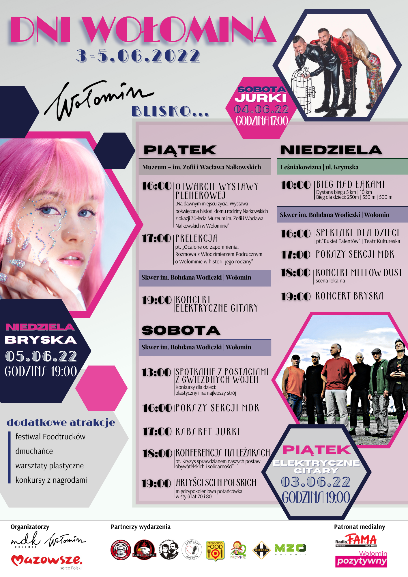 Nasze świętowanie pod hasłem Wołomin BLISKO rozpoczynamy już w piątek 3 czerwca 2022 i bawimy się hucznie do niedzieli 5 czerwca 2022.