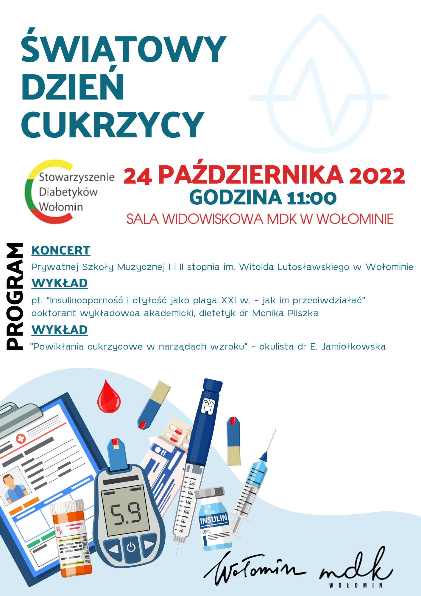 24 października o godzinie 11.00 w Miejskim Domu Kultury w Wołominie odbędzie się Światowy Dzień Cukrzycy.