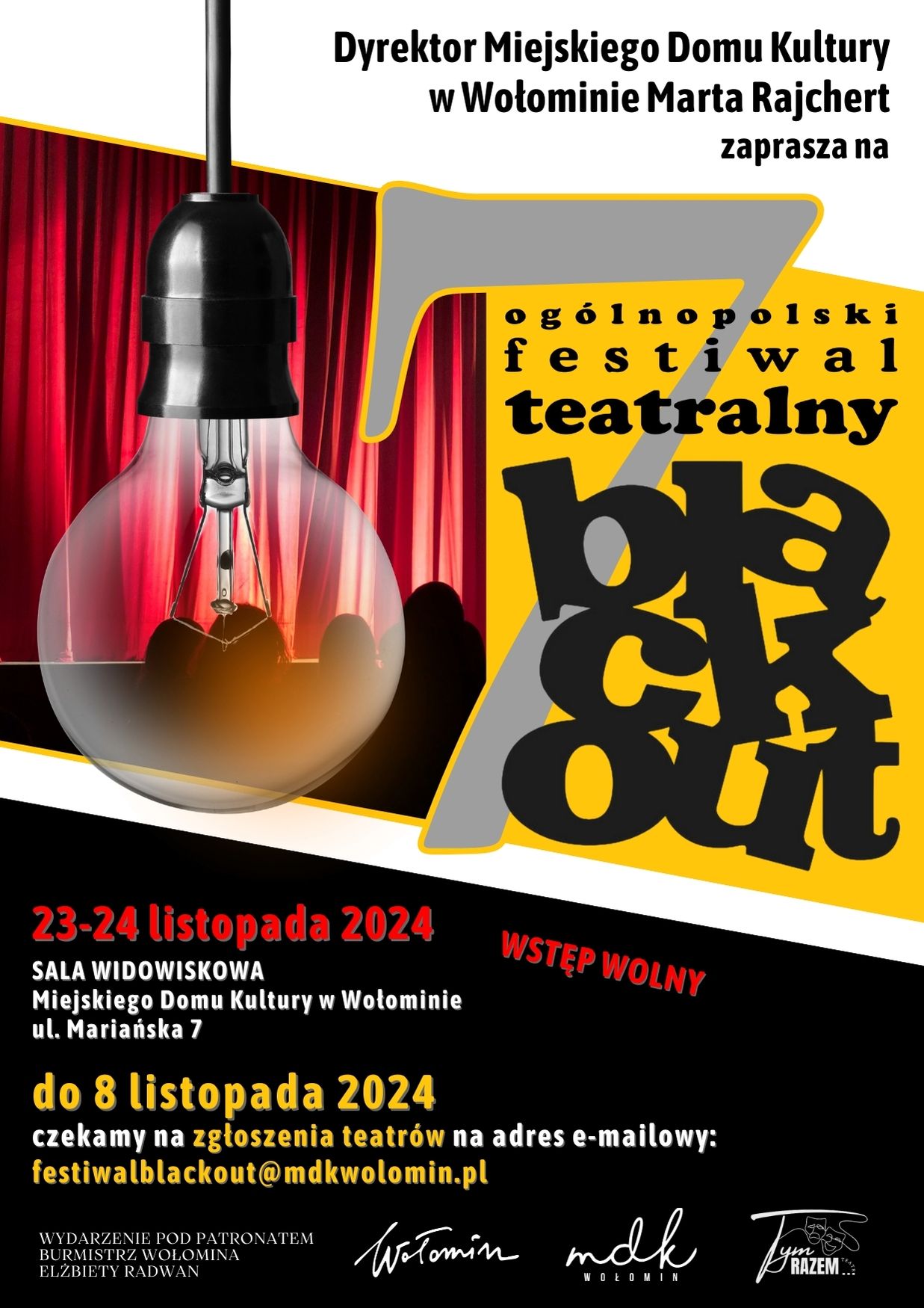 Odpowiadając na liczne pytania z całej Polski, niniejszym ogłaszamy, że właśnie rozpoczął się nabór do udziału w siódmej edycji Ogólnopolskiego Festiwalu Teatralnego „Blackout”.