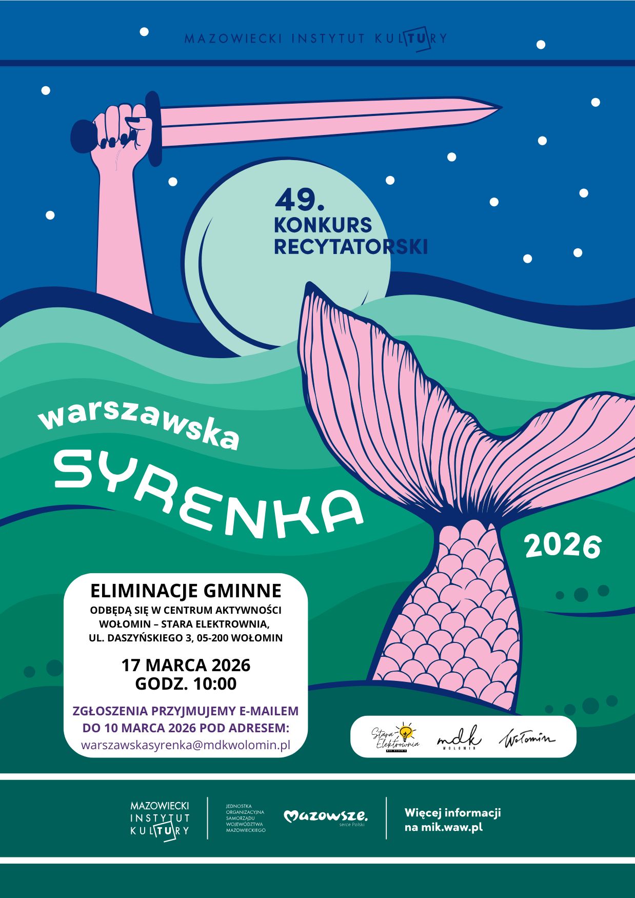 ZGŁOSZENIA przyjmujemy do 10 marca 2026 r. pod adresem: warszawskasyrenka@mdkwolomin.pl