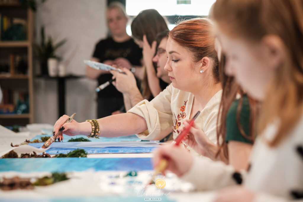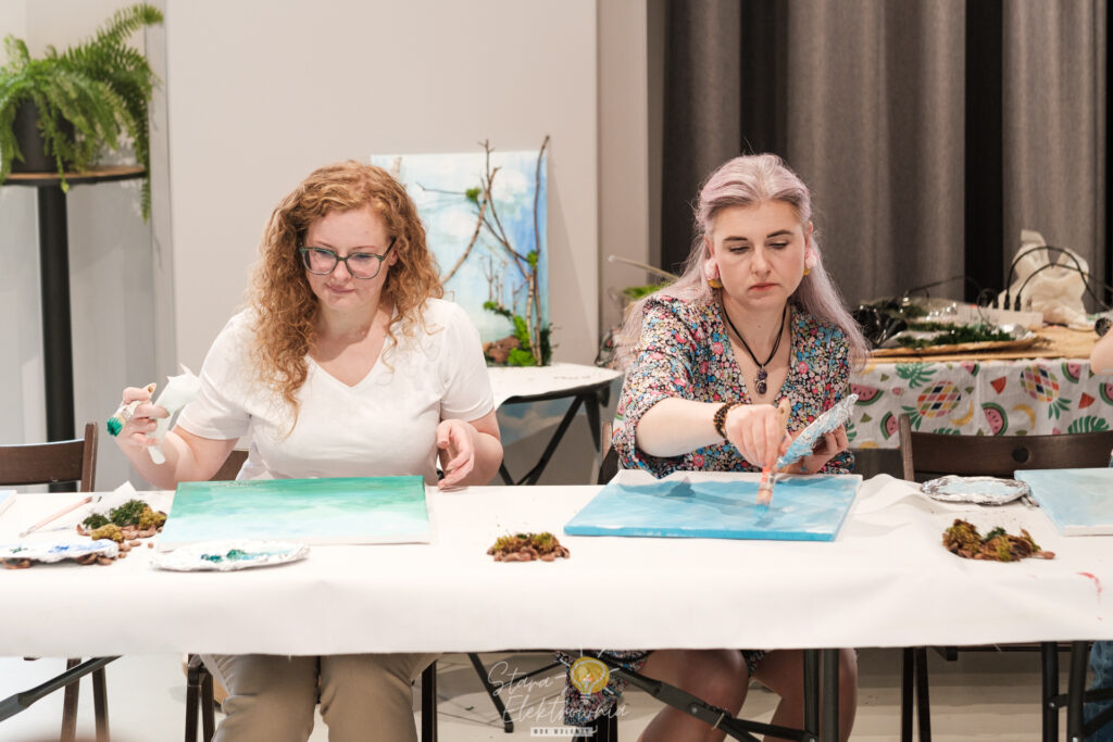 Połączenie malarstwa z naturalnymi elementami 3D dało fenomenalny rezultat! Prace wyszły absolutnie fantastyczne – każda z nich to unikatowe, „żyjące” dzieło sztuki.
